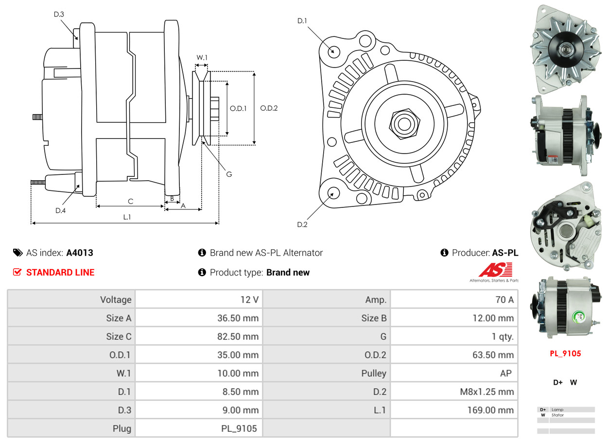 Pre náhradný diel AS-PL A4013 - Alternátor bohužiaľ nemáme náhradu.