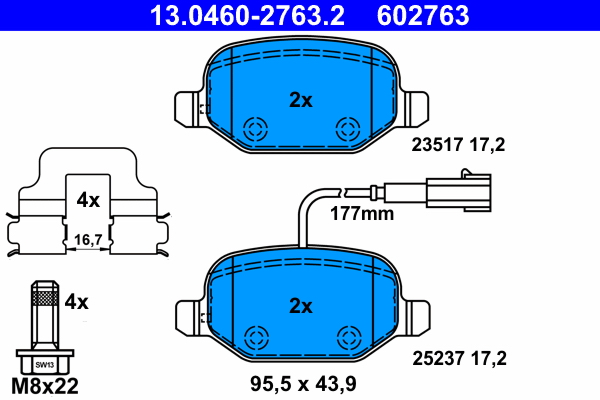ATE 13.0460-2763.2 - Sada brzdových platničiek, vždy 4 kusy v sade