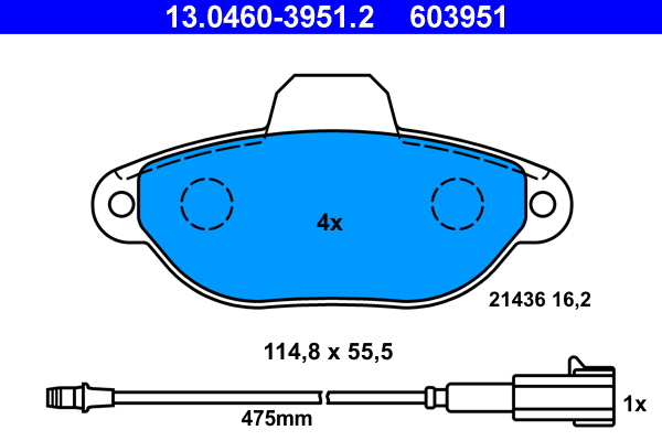 ATE 13.0460-3951.2 - Sada brzdových platničiek, vždy 4 kusy v sade