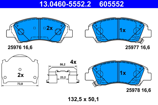 ATE 13.0460-5552.2 - Sada brzdových platničiek, vždy 4 kusy v sade