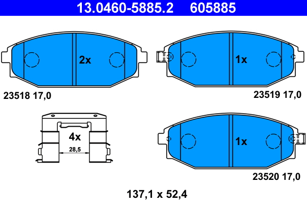 ATE 13.0460-5885.2 - Sada brzdových platničiek, vždy 4 kusy v sade