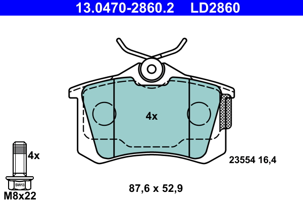 ATE 13.0470-2860.2 ATE Ceramic - Sada brzdových platničiek, vždy 4 kusy v sade