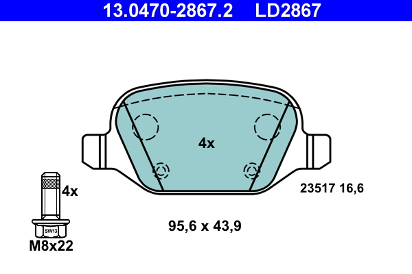 ATE 13.0470-2867.2 ATE Ceramic - Sada brzdových platničiek, vždy 4 kusy v sade