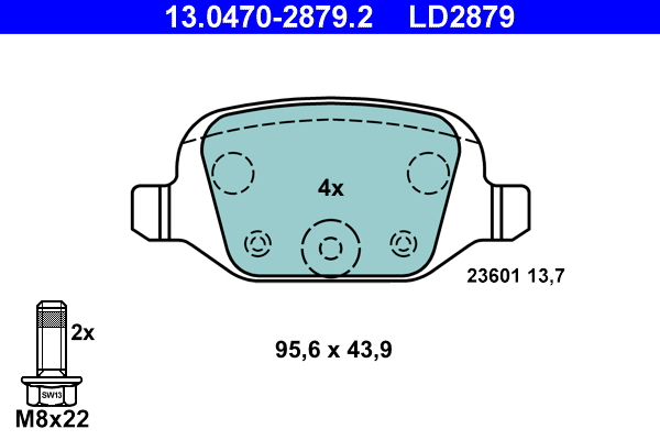 ATE 13.0470-2879.2 ATE Ceramic - Sada brzdových platničiek, vždy 4 kusy v sade