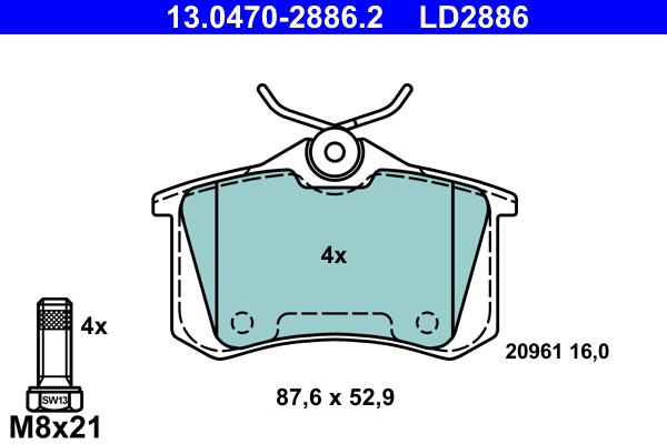 ATE 13.0470-2886.2 ATE Ceramic - Sada brzdových platničiek, vždy 4 kusy v sade