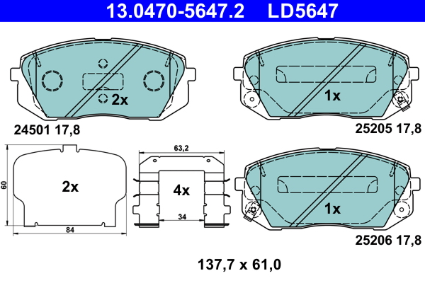 ATE 13.0470-5647.2 ATE Ceramic - Sada brzdových platničiek, vždy 4 kusy v sade