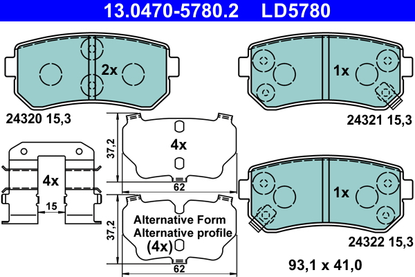 ATE 13.0470-5780.2 ATE Ceramic - Sada brzdových platničiek, vždy 4 kusy v sade