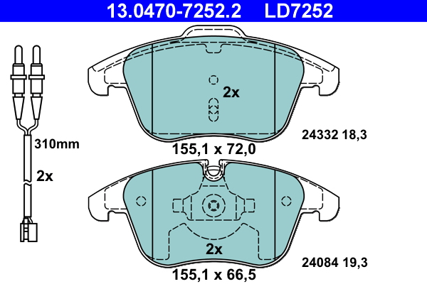 ATE 13.0470-7252.2 ATE Ceramic - Sada brzdových platničiek, vždy 4 kusy v sade