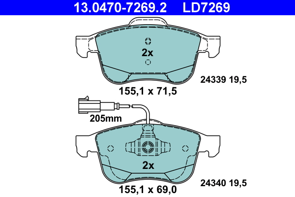 ATE 13.0470-7269.2 ATE Ceramic - Sada brzdových platničiek, vždy 4 kusy v sade