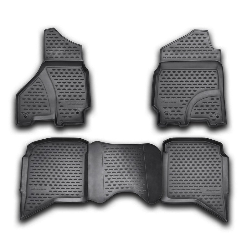 Gumové autokoberce Novline pro vůz Dodge Ram 1500/2500/3500 Crew cab mají zvýšený okraj (3cm) po celém obvodu a spolehlivě zabraňují pronikání nečistot do interiéru automobilu .