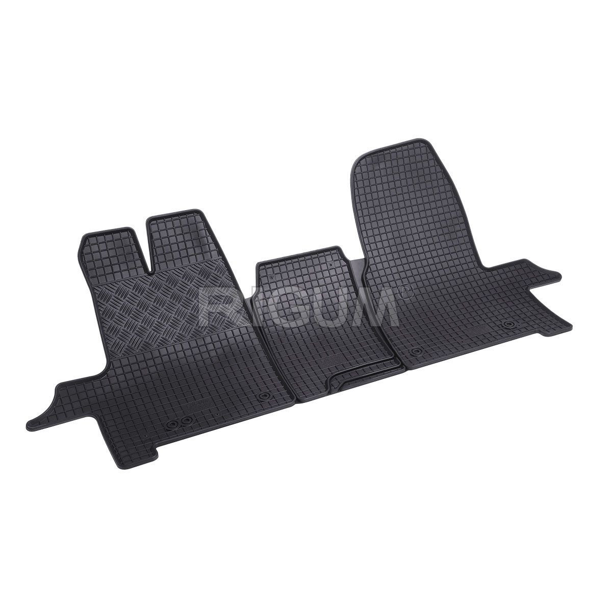 Kvalitní gumové autokoberce pro vůz Ford Tourneo Custom . Autokoberce mají tradiční (čtverčkovaný) design , díky kterému nedochází k přelévání vody, popř. tajícího sněhu po kobercích. Okraj autokoberců je přibližně 1 cm vysoký.