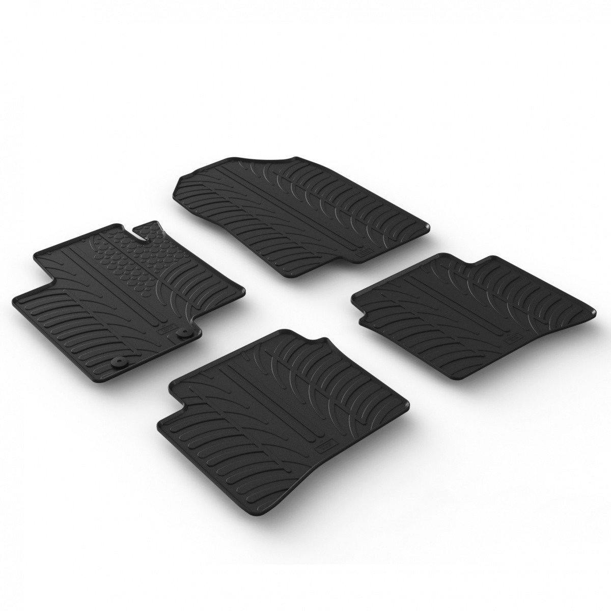 Gumové autokoberce Gledring pro vůz Hyundai i20 , mají 1 cm vysoký okraj , který chrání původní koberec auta před vodou, tajícím sněhem a agresivní solí.