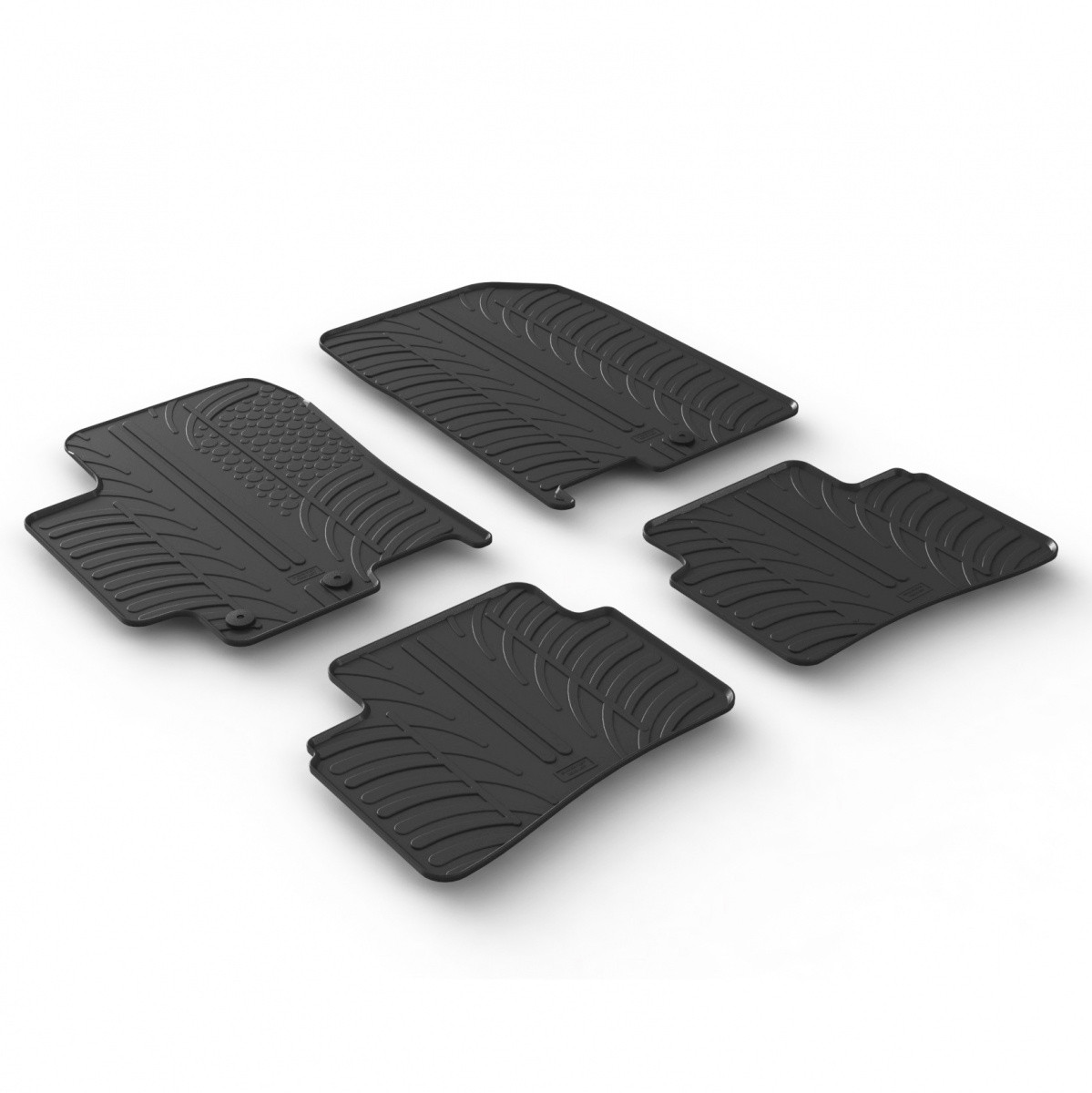 Gumové autokoberce Gledring pro vůz Kia Stonic , mají 1 cm vysoký okraj , který chrání původní koberec auta před vodou, tajícím sněhem a agresivní solí.
