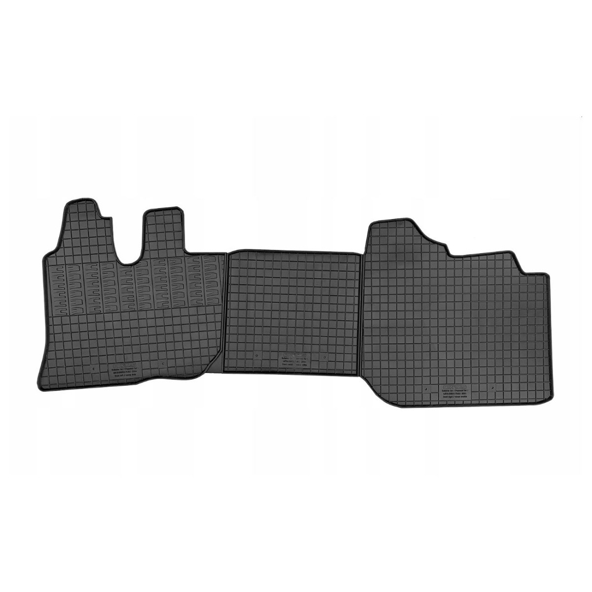 Kvalitní gumové autokoberce pro vůz Mitsubishi Fuso, který se vyrábí od roku 2014. Jedná se o sadu na celý vůz. Autokoberce mají tradiční (čtverčkovaný) design , díky kterému nedochází k přelévání vody, popř. tajícího sněhu po kobercích. Okraj autokoberců je přibližně 1 cm vysoký.