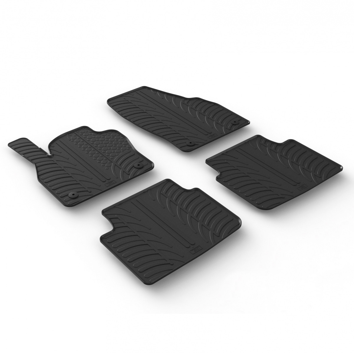 Gumové autokoberce Gledring pro vůz Škoda Kamiq , mají 1 cm vysoký okraj , který chrání původní koberec auta před vodou, tajícím sněhem a agresivní solí.