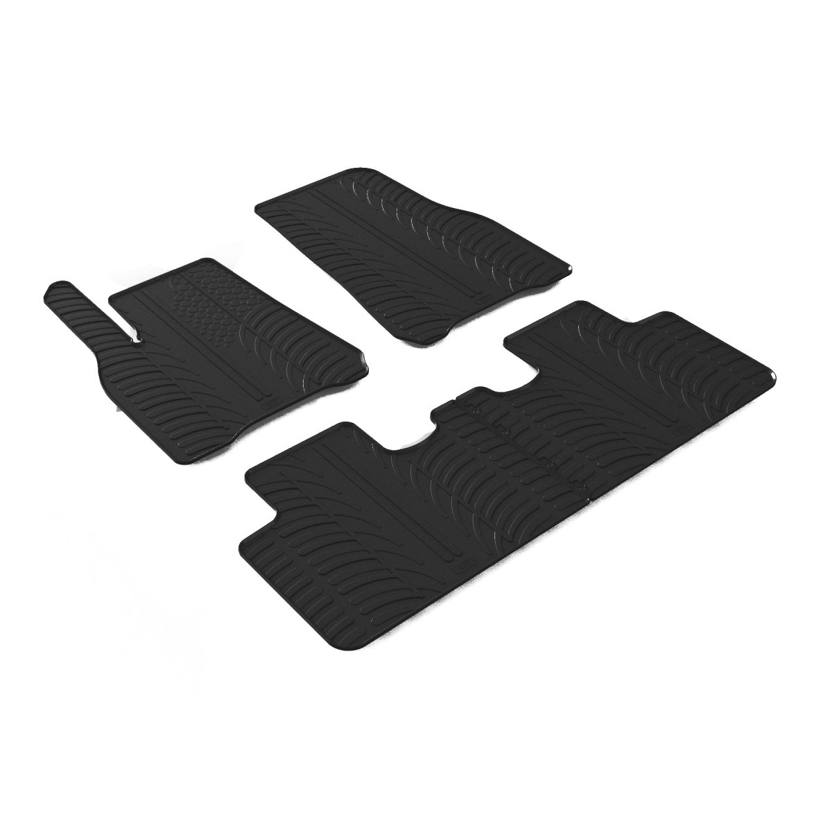 Gumové autokoberce Gledring pro vůz Tesla Model Y , mají 1 cm vysoký okraj , který chrání původní koberec auta před vodou, tajícím sněhem a agresivní solí.