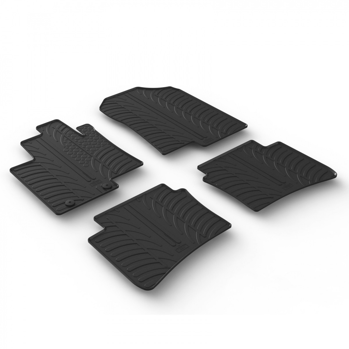 Gumové autokoberce Gledring pro vůz Hyundai Bayon, mají 1 cm vysoký okraj, který chrání původní koberec auta před vodou, tajícím sněhem a agresivní solí.