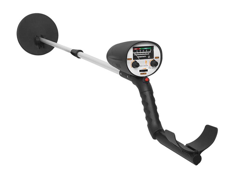 Praktický detektor kovu pro vyhledávání ztracených kovových předmětů. Přehledný ručičkový ukazatel citlivosti reagující na nalezený předmět.