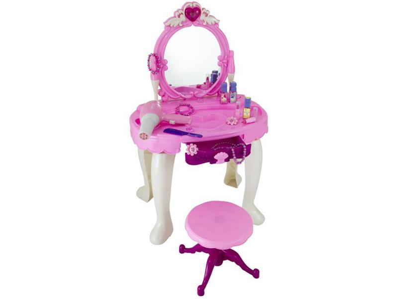 Kosmetické zrcadlo pro malé parádnice. Vhodný dárek pro každou malou princeznu. Jednoduše vložte baterie 3x AA do zrcadla, stiskněte srdíčko v horní části a stolek začne vydávat zvuky a srdíčko blikat.