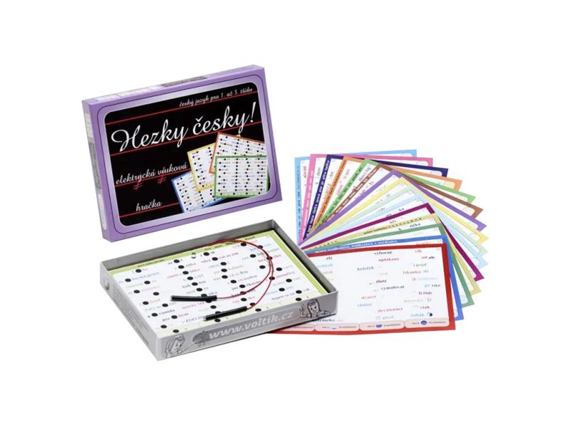 Elektrická výuková hračka k osvojení základních pravidel českého pravopisu vyučovaných v 1. až 3. třídě základní školy. Na 16-ti listech je natištěno 640 pečlivě vybraných slov, do kterých děti doplňují chybějící písmenka. Ve spodní části každého listu jsou uvedeny možnosti odpovědí. Jednotlivé listy s úlohami jsou v souladu s učebnicemi pro 1. až 3. třídu základní školy.