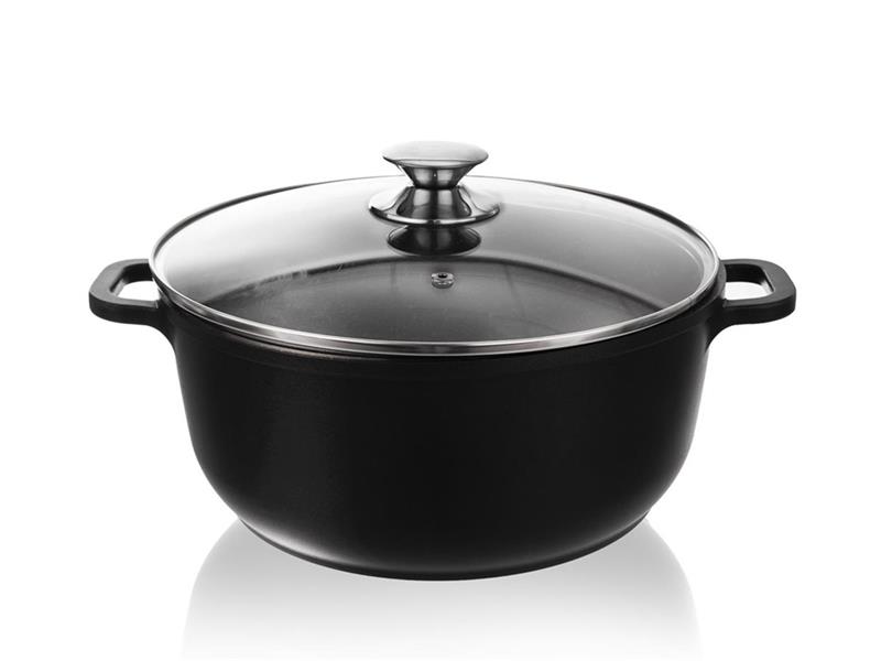 Masivní hrnec s poklicí s velmi kvalitním nepřilnavým povrchem PFLUON GRANIT. Můžete v něm vařit, smažit, dusit, opékat a zapékat s minimální potřebou tuku. Připravovaný pokrm se nepřipéká. Poklice s otvorem pro únik přebytečné páry. Vhodný na všechny typy spotřebičů včetně indukce i trouby. Doporučujeme použití kuchyňské chňapky. U plynových sporáků volte správnou velikost plamene, u elektrických, sklokeramických a indukčních vařičů je nutné zvolit odpovídající velikost ploténky. Připravovaný pokrm lze na sporáku připravit a pak jej vložit do trouby. Připravené jídlo můžete pohodlně skladovat v hrncích také v chladničce. Při použití v troubě poklice max. do 200 °C. Lze mýt v myčce na nádobí.