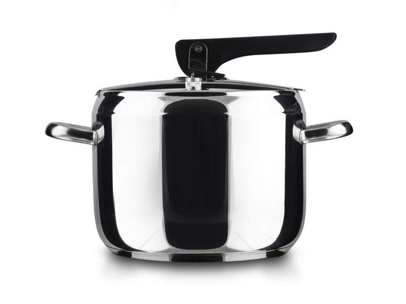 Nerezový tlakový hrnec 5 l s pákovým uzávěrem, průměr 20,8 cm, výška 15 cm, nerez 18 / 0, tloušťka stěny 0,6 mm, 2 ventily, silné sendvičové dno. Víko obsahuje dva ventily, hlavní pracovní ventil a pomocný / bezpečnostní ventil. Tlakový hrnec je určen pro rychlou přípravu pokrmů a lze jej používat na všechny typy varných desek vč.indukce.Víko tlakového hrnce obsahuje hlavní pracovní ventil a pomocný ventil pro případ zanešení pracovního ventilu, což činí hrnec max.bezpečný !