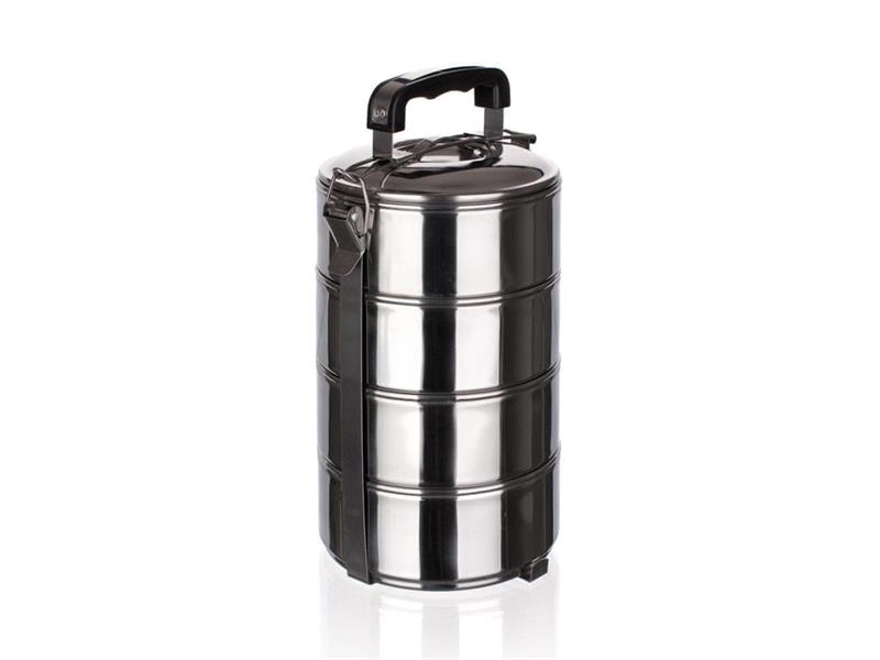 Čtyř dílný nerezový jídlonosič STORE LINE určený k přenášení potravin a hotových pokrmů. Díky sadě zůstane vaše jídlo teplé než jej donesete. Sada obsahuje 4 nerezové misky o průměru 13 cm a výšce 5,7 cm.