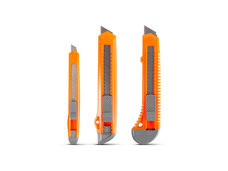 Univerzální nůž s lámavou čepelí. Může být ideální pro tapetování a domácí práce. Díky třem velikostem vždy naleznete velikost, kterou potřebujete.