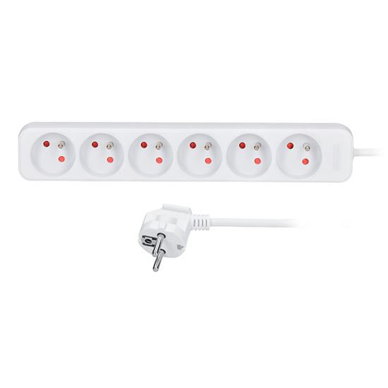 Prodlužovací přívod SolightTechnické parametry:- počet zásuvek: 6- průřez vodičů: 3 x 1mm2- typ kabelu: H05VV-F3- lomená vidlice- barva: bílá- délka: 2m- 230V/10A