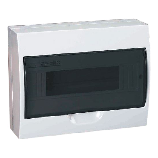 Rozvaděč TSM-12 plastový 1x12P nástěnný.Technické parametry:- rozměry 256mm(D)x210mm(V)x100mm(H)- kouřová transparentní dvířka- jmenovité napětí 400V- kovová DIN lišta- svorkovnice- krytí IP40- třída izolace II