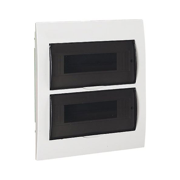 Rozvaděč TSMF-24 plastový 2x12P přisazenýTechnické parametry:- rozměry: 257mm(D) x 310mm(V) x 76mm(H)- kouřová transparentní dvířka- jmenovité napětí 400V- kovová DIN lišta- svorkovnice- krytí: IP40- třída izolace II