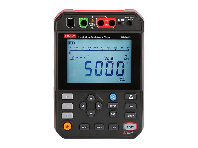 Tester izolačního odporu UT513C 5 kV , je digitální vysokonapěťový tester izolačního odporu, navržený s několika rozsahy včetně 250 V, 500 V, 1000 V, 2500 V a 5000V. Je ideálním měřicím přístrojem pro oddělení elektrické energie, telekomunikací, meteorologie, strojovny, ropného pole, elektromechanické instalace a údržby. průmyslových a těžebních podnicích.