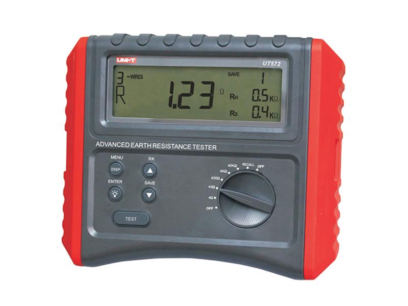 UT572 je inteligentní přístroj k měření zemního odporu a rezistivity půdy (měrného zemního odporu). Přístroj najde široké uplatnění při návrhu a testování uzemňovacích systémů novostaveb elektrických instalací a hromosvodů ve stavebnictví, v průmyslu, rozvodnách, telekomunikacích apod.