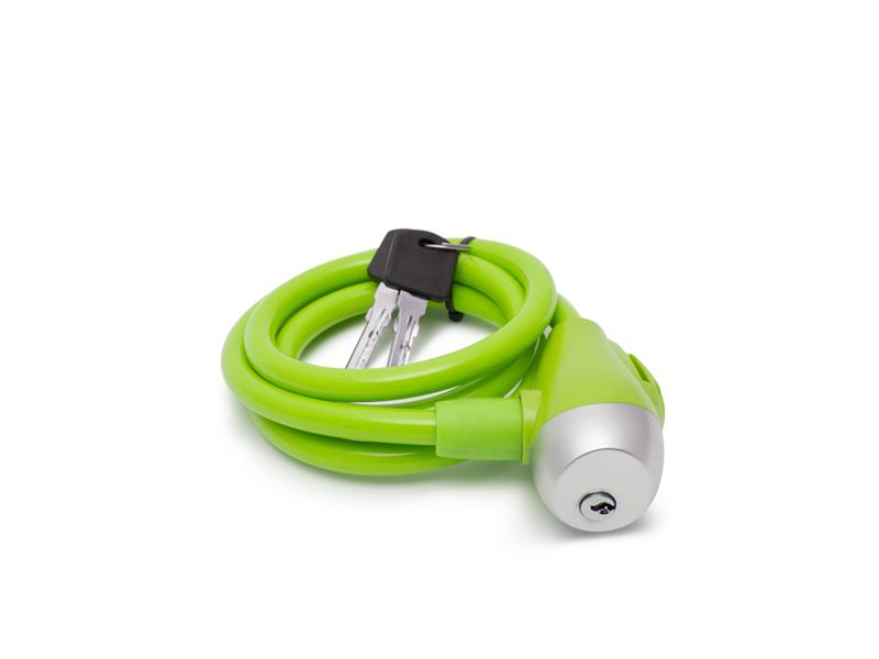Zámka na kolo (kabelová). Ocelový pogumovaný kabel je odolný proti řezání nebo prostřižení. Kvalitní zámek se 2 klíči.