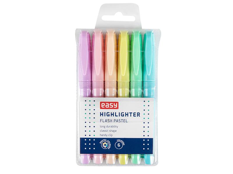 Zvýrazňovače v moderním tvaru v pastelových barvách s použitím na různé druhy papíru, např. faxový.Balení obsahuje mix 6 barev.