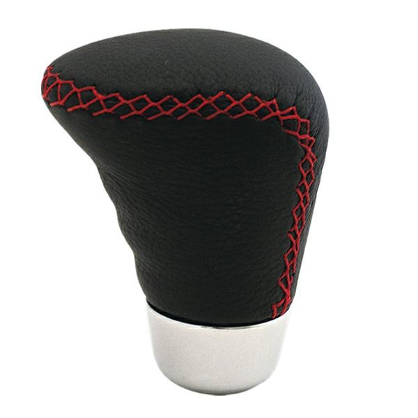 231-1223 - Hlavice řadící páky kožená černá s červeným obšitím, 01458