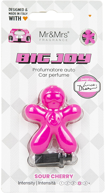 Big Joy Mr.&Mrs. Nový osvěžovač vzduchu v řadě BIG JOY doplňuje nabídku gelových osvěžovačů od italského výrobce Mr.&Mrs. Panáček je vyroben z polymerní hmoty s vonnými oleji. Do ventilační mřížky lze upevnit pomocí přiloženého plastového klipu. Blistr obsahuje papírový tester s vůní pro snadnější orientaci. Osvěžovač není omezen datem spotřeby. Po rozbalení dokáže provonět interiér vozu minimálně po dobu 45 dní.