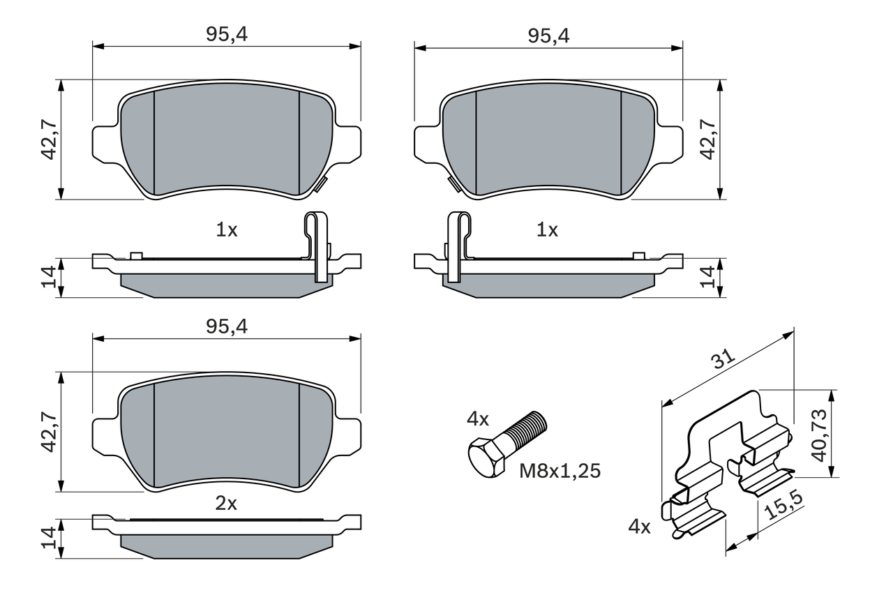 BOSCH 0 986 494 654 - Sada brzdových platničiek, vždy 4 kusy v sade