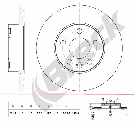 BRECK BR 055 SA100 - Brzdový kotúč