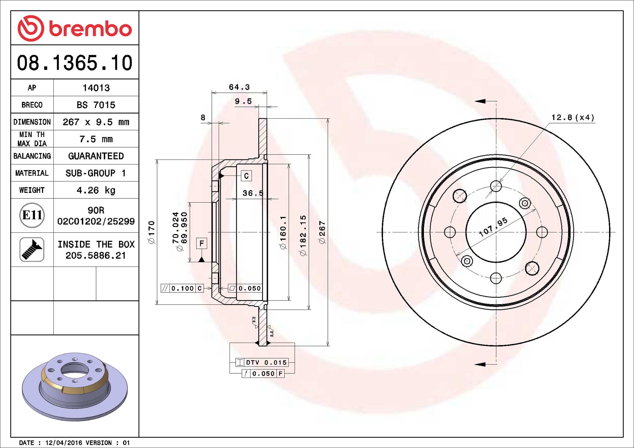 BREMBO 08.1365.10 - Brzdový kotúč