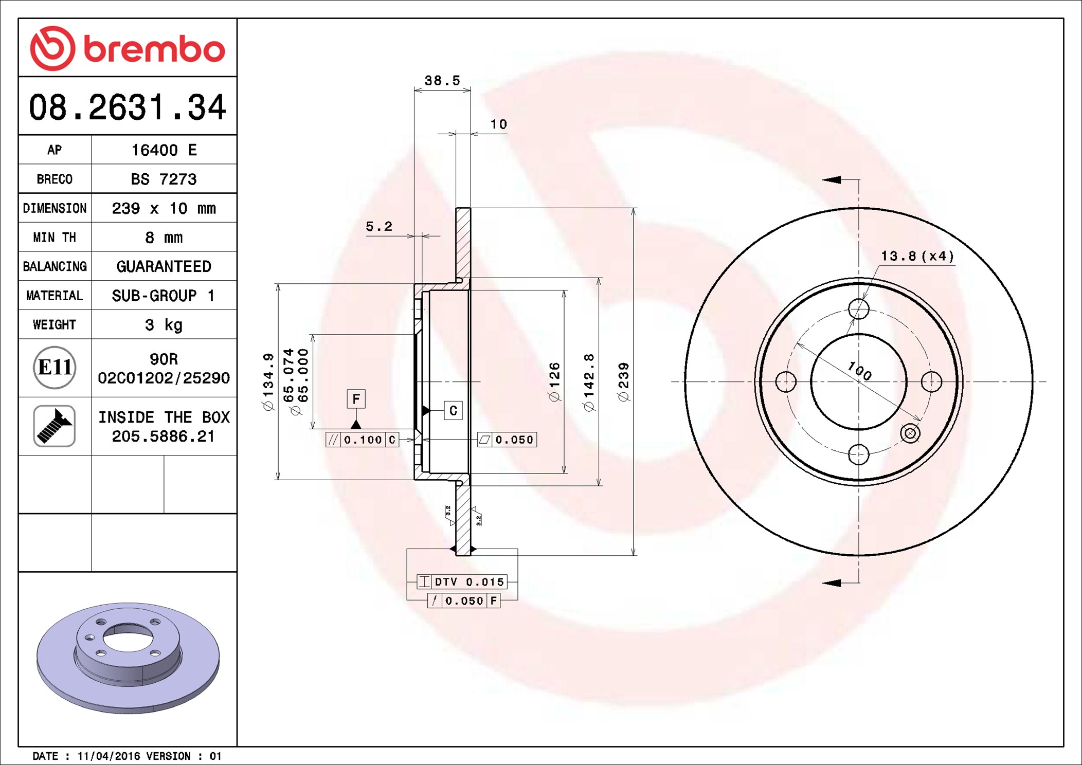 BREMBO 08.2631.34 - Brzdový kotúč