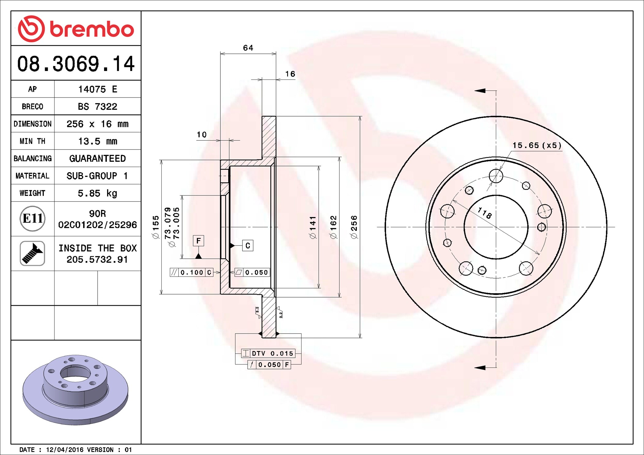 BREMBO 08.3069.14 - Brzdový kotúč