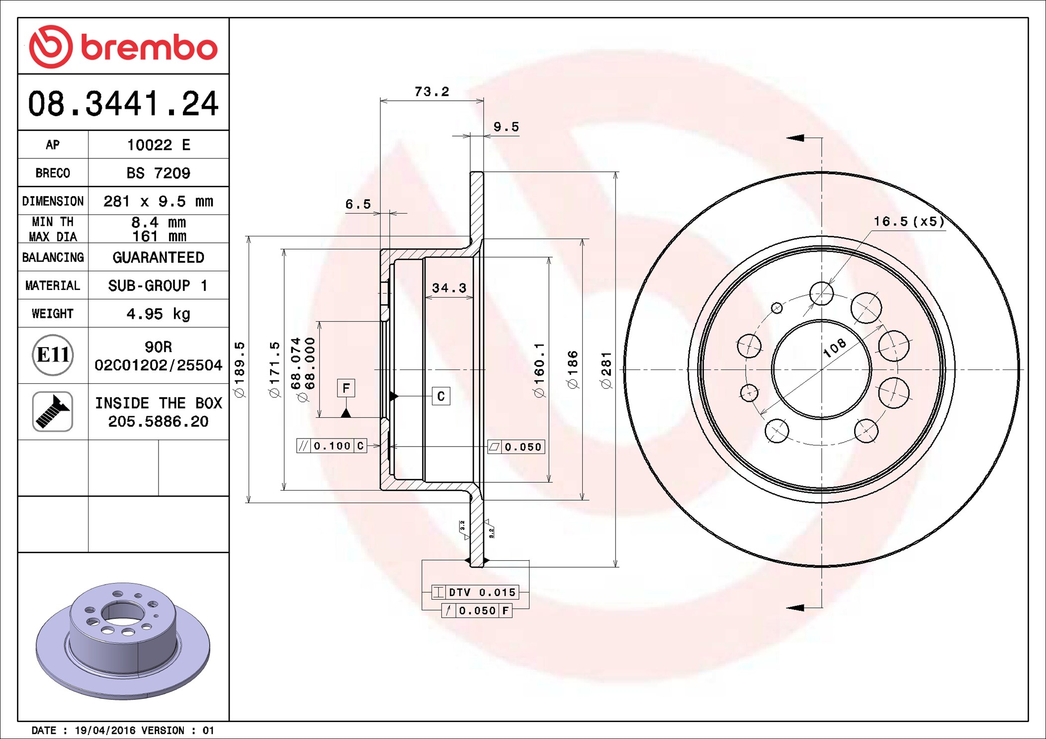 BREMBO 08.3441.24 - Brzdový kotúč
