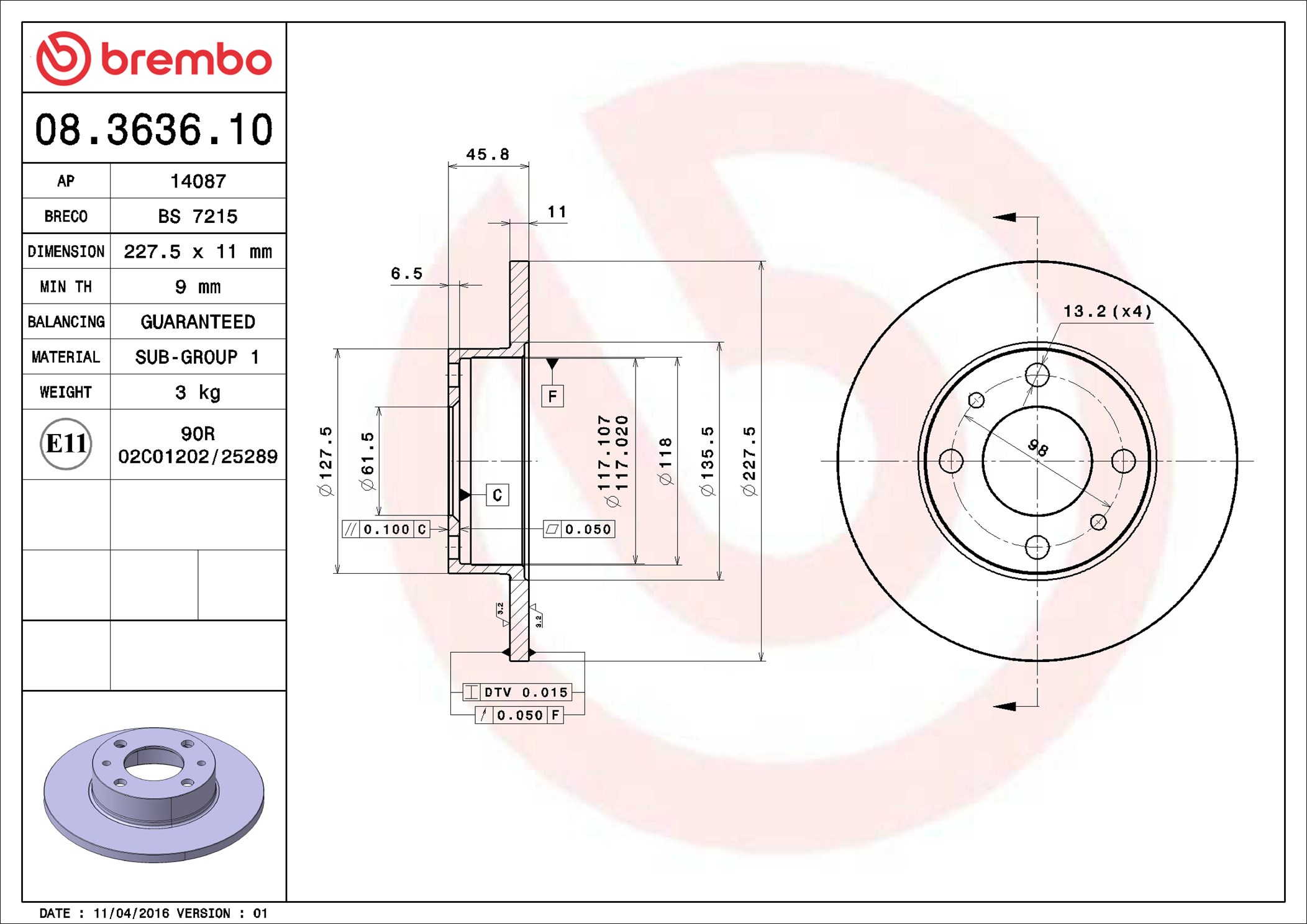 BREMBO 08.3636.10 - Brzdový kotúč