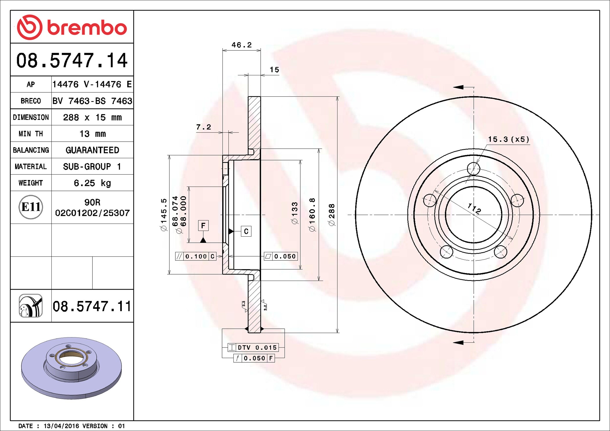 BREMBO 08.5747.11 - Brzdový kotúč
