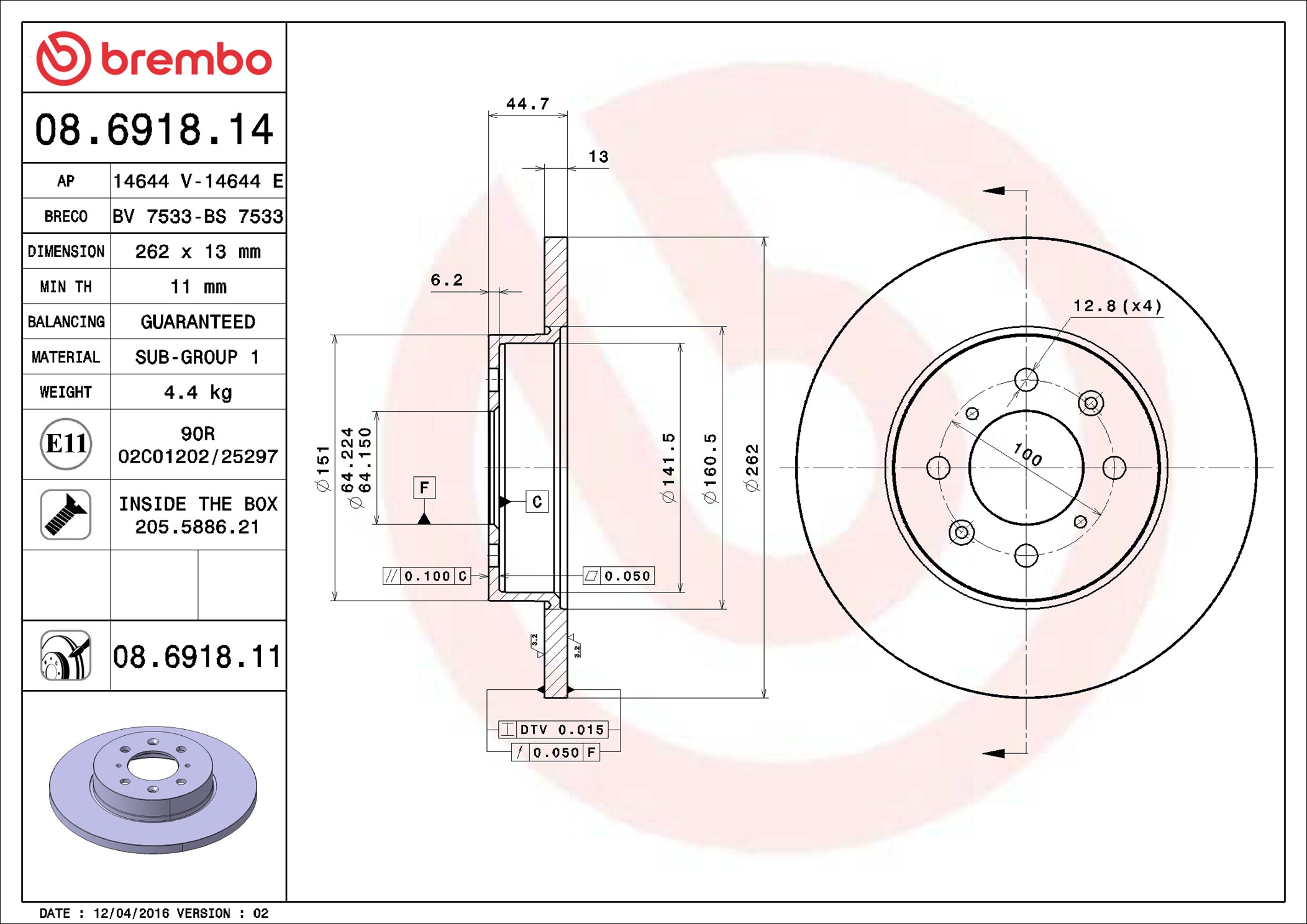 BREMBO 08.6918.11 - Brzdový kotúč