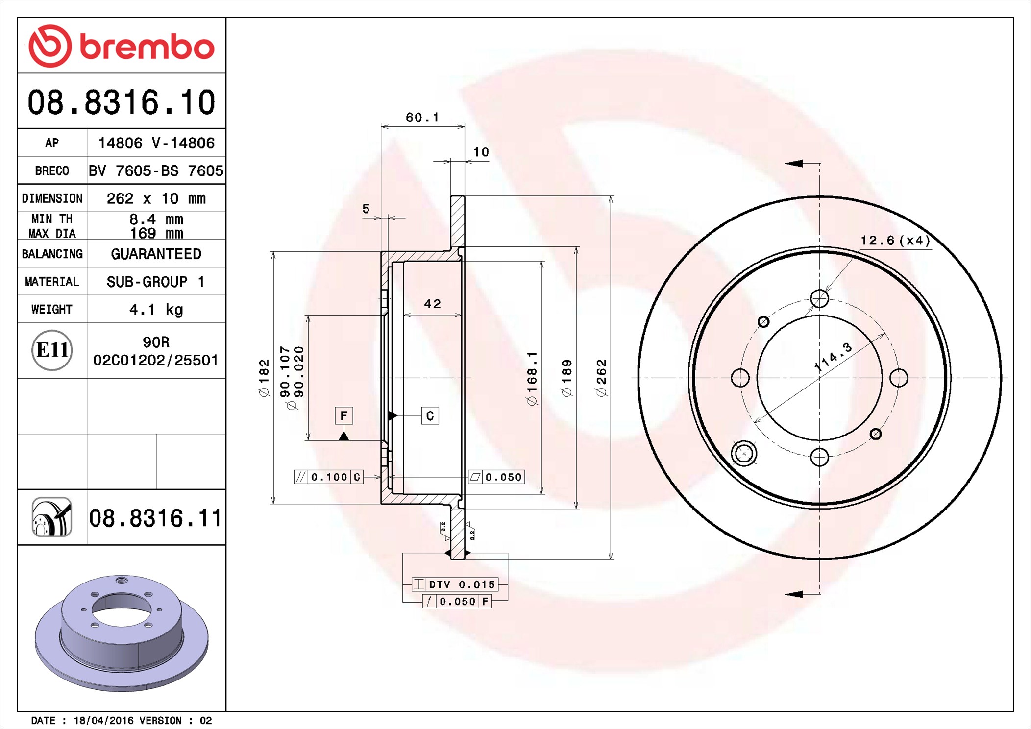 BREMBO 08.8316.11 - Brzdový kotúč