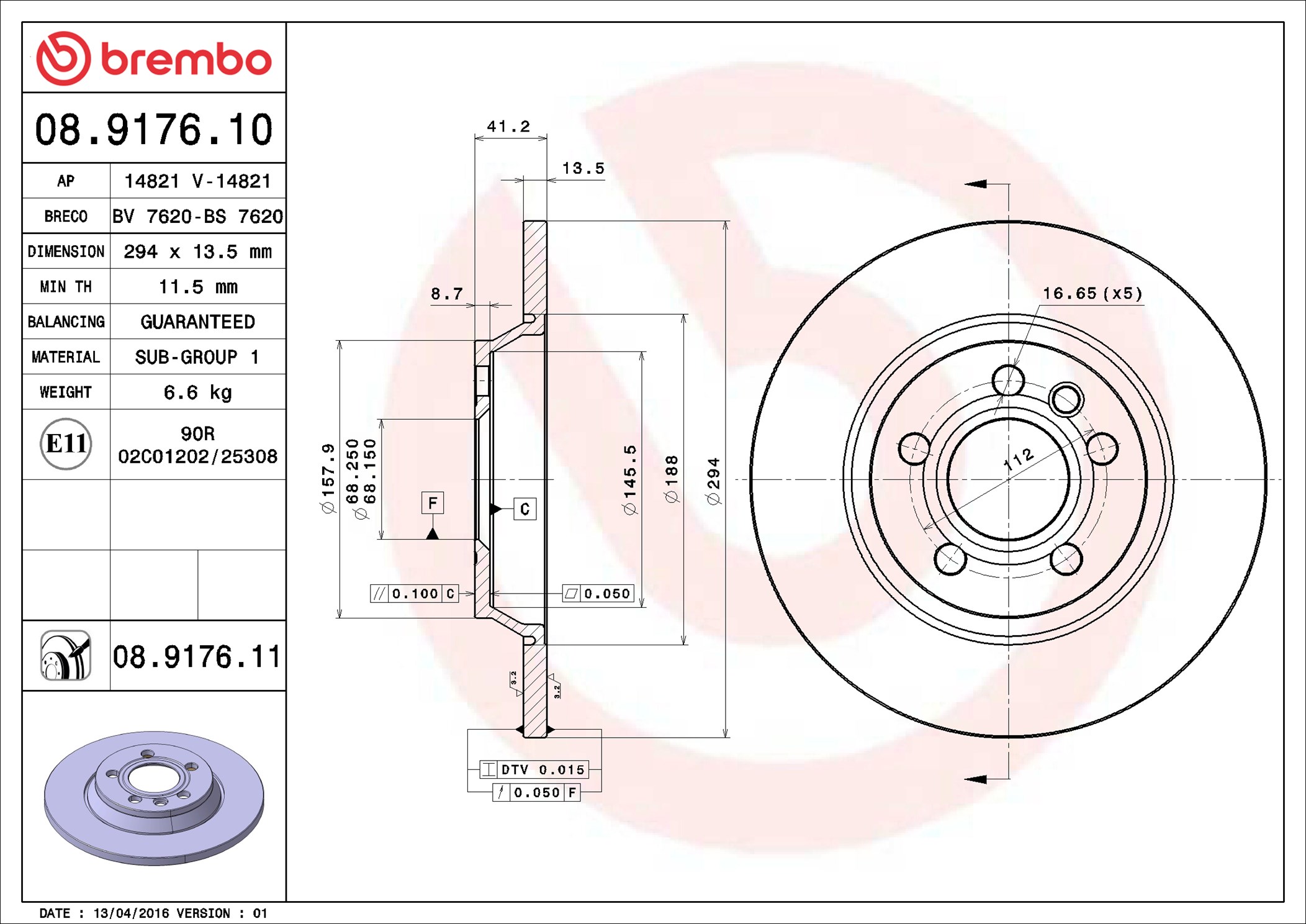 BREMBO 08.9176.11 - Brzdový kotúč