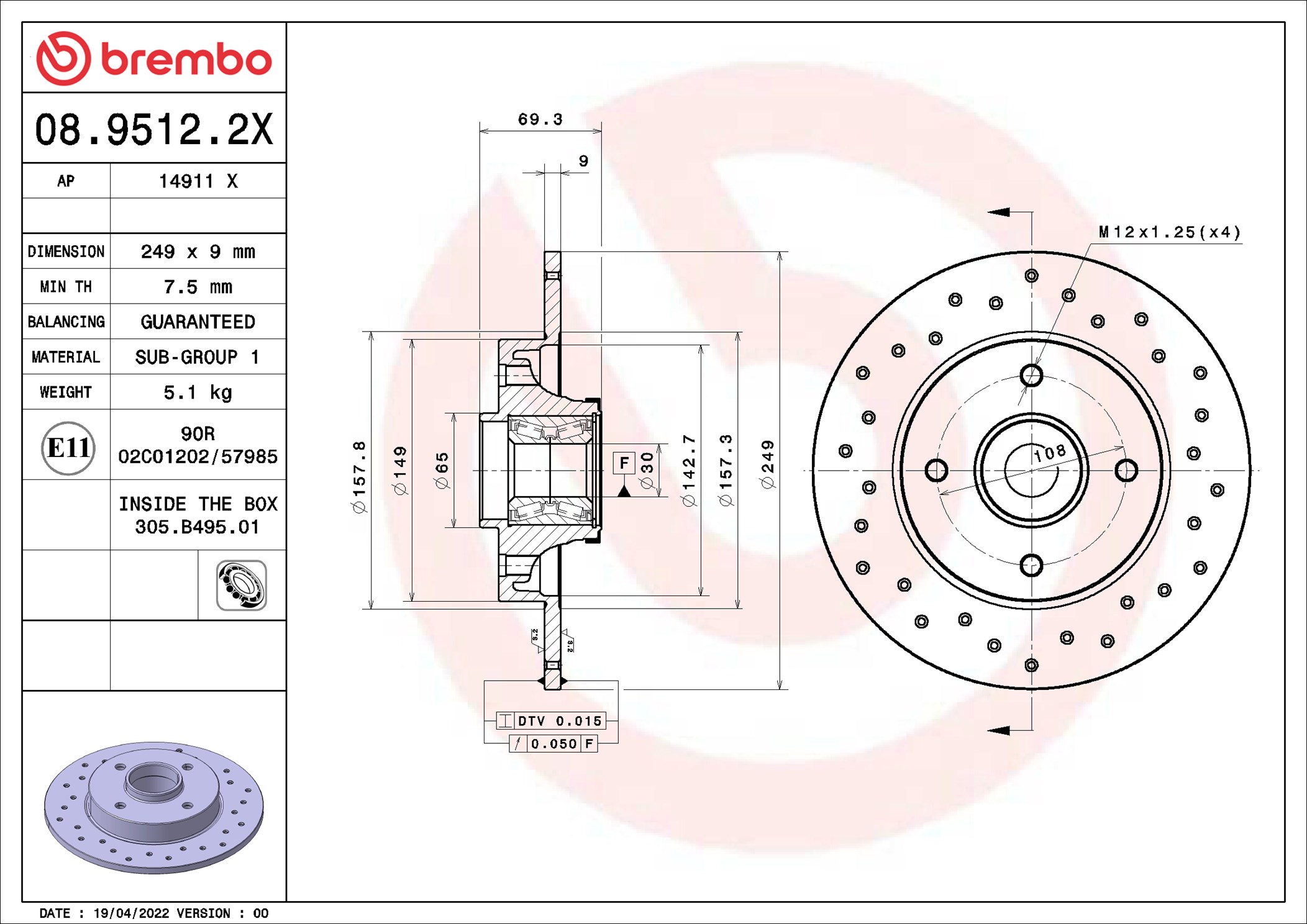 BREMBO 08.9512.2X - Brzdový kotúč