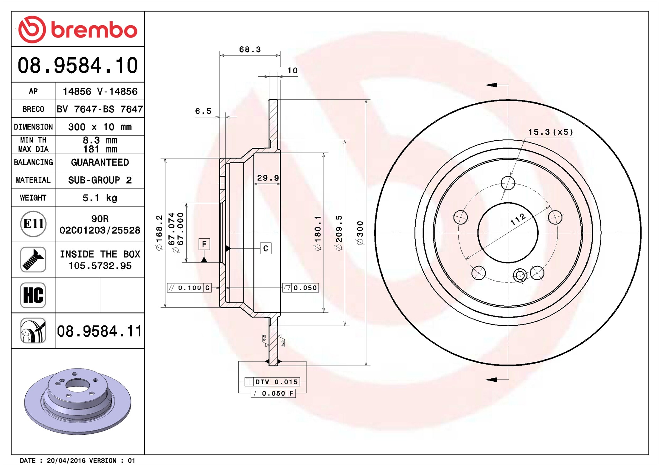 BREMBO 08.9584.11 - Brzdový kotúč